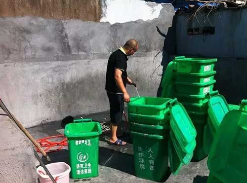 該垃圾桶清洗點選在小區(qū)廢棄操場的一角,原本被居民作為停車場,現(xiàn)在劃出10平方米鋪設(shè)排水管道,裝了壓水泵,還請了一名清潔人員專門負責清洗垃圾桶.接下去,金棉小區(qū)和虞家路農(nóng)村片近200個垃圾桶,將三天“洗一次澡”。此外,眉山、陽明、金山等社區(qū)“洗澡池”也已“營業(yè)”。