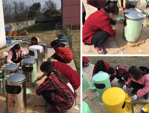 為了進一步提升校園文化,創(chuàng)建更加優(yōu)美的育人環(huán)境,推動幼兒園建設(shè)朝著凈化、美化、規(guī)范化的方向發(fā)展,幼兒園青年教師對園內(nèi)垃圾桶進行美化、裝飾。 教師們先選稿、討論設(shè)計方案,再畫底稿,最后調(diào)油漆上色。經(jīng)過老師們的巧手布置,原本單調(diào)呆板的垃圾桶一個個鮮活起來。孩子們來園看到一個個五彩繽紛的垃圾桶興奮極了,非常樂意把垃圾撿起來扔進漂亮的垃圾桶里。 據(jù)悉,本次活動是該園繼設(shè)計創(chuàng)意家園聯(lián)系欄、廢舊輪胎變廢為寶、裝飾走廊墻飾等活動后的又一次環(huán)境創(chuàng)新活動。這些活動不僅有效促進了該園教師環(huán)境創(chuàng)設(shè)理念的更新、提升了創(chuàng)設(shè)技能和品位,同時促進了教師之間的相互學習,認識到了環(huán)境創(chuàng)設(shè)對幼兒發(fā)展的價值,更為自己積累了有益的經(jīng)驗,為以后更好的開展環(huán)境創(chuàng)設(shè)打下堅實的基礎(chǔ)。