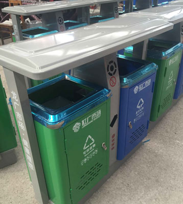 欣方圳環(huán)保分類(lèi)戶外鐵垃圾桶批量生產(chǎn)圖